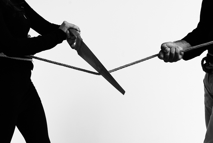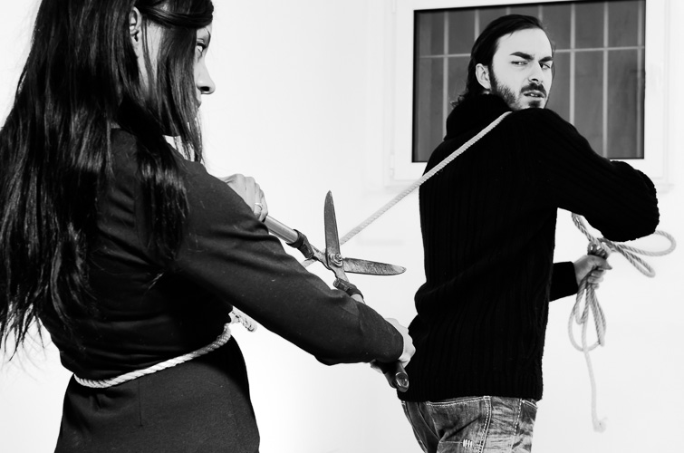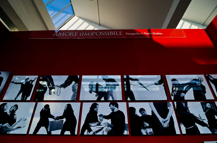 Torino, Italia, 2011 Realizzato con l’aiuto di un gruppo di attori, le 14 immagini disegnano, come nello storyboard cinematografico, la trama del vissuto di una coppia per raccontare il dilatarsi nel tempo di un rapporto affettivo da reinventare. I singoli scatti sono a volte metafore di stati d’animo comuni, soprattutto nei rapporti consolidati, ma anche consumati dal tempo, in quell’ oscillare continuo tra desiderio di ridisegnare il proprio spazio di indipendenza e intimità, e quello di ritrovare altri codici della vita affettiva. Paolo Gobbo scatta lì dove lo “scarto” si fa impalpabile e sottile, contrapponendo forze opposte, in cui si cela anche una scheggia di violenza: violentare se stessi per ritrovare una serenità diversa che a volte non sappiamo neppure dove cercare. L’abbraccio/coltello; il tiro alla fune, ma anche corde che si lacerano con le forbici, o che legano mani e polsi, nell’impotenza di sciogliersi verso una ritrovata libertà. Un quotidiano che a volte si consuma nel silenzio di chi ha poco da dire o di chi non vuole più sentire, chiudendosi in sé stesso come unica via di fuga per ritrovarsi. L’Amore è davvero (im)possibile? nel gioco del titolo e nell’ambiguità delle immagini Paolo Gobbo scioglie la sua riserva nella chiusa del racconto, positiva e felice, ma domani sarà forse un’altra storia. | ![]() | ![]() | ![]() | ![]() | ![]() | ![]() | ![]() | ![]() | ![]() | ![]() | ![]() | ![]() | ![]() | ![]() | ![]() | ![]() |